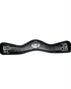 Softly padded leather dressage girth with roller buckles and girth loops at both ends. Ergonomically shaped for comfort.