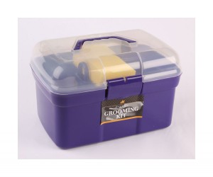 Complete grooming kit box including....Hoof Oil Brush & Container, Dandy Brush, Body Brush, Sponge, Hoof Pick with Brush, Plastic Comb & Curry Comb.