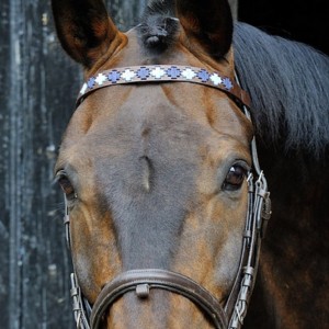 Try one of our fabulous new colourful Polo-style Browbands. Hand-embroidered using high-quality brown bridle leather, they will brighten up any bridle! Available in three sizes. (Width ¾ " (2cm)