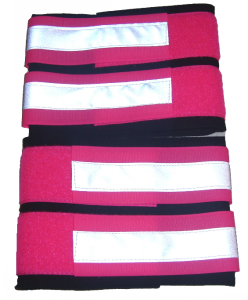 Pack of leg spats that are fluorescent and reflective in low light.
